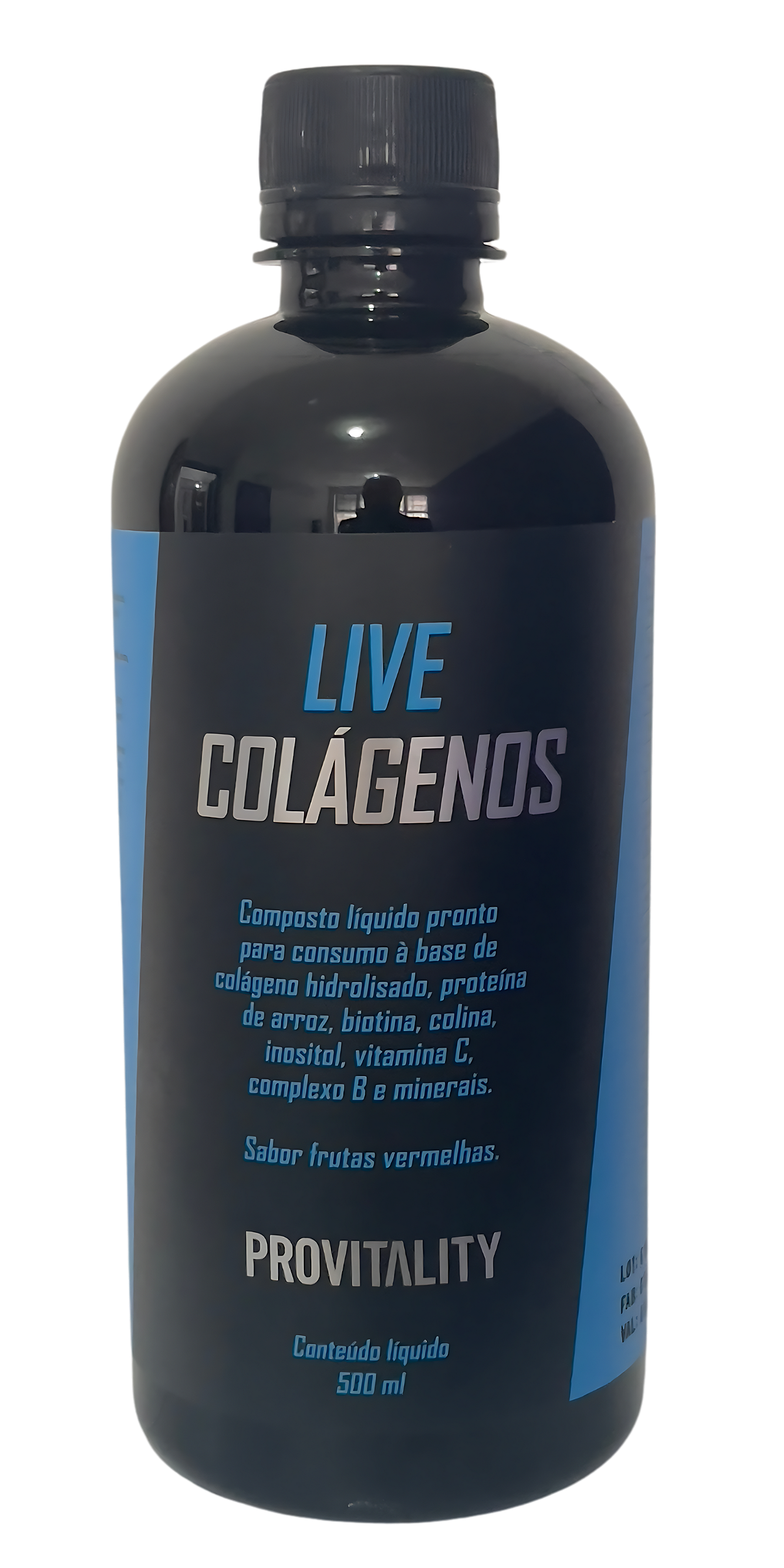 Sobre o produto: o Live Colágenos apresenta em sua composição nutrientes como: colágeno hidrolisado, vitaminas do complexo B, vitamina C, colina, selênio, cálcio, magnésio, zinco, silício (presente na proteína de arroz), inositol e biotina. Todos os nutrientes contidos no produto são especialmente escolhidos para que exista harmonização e assim oferecer melhor aproveitamento pelo organismo, afinal, nutrientes corretamente combinados não anulam funções, mas auxiliam no metabolismo do corpo como um todo.