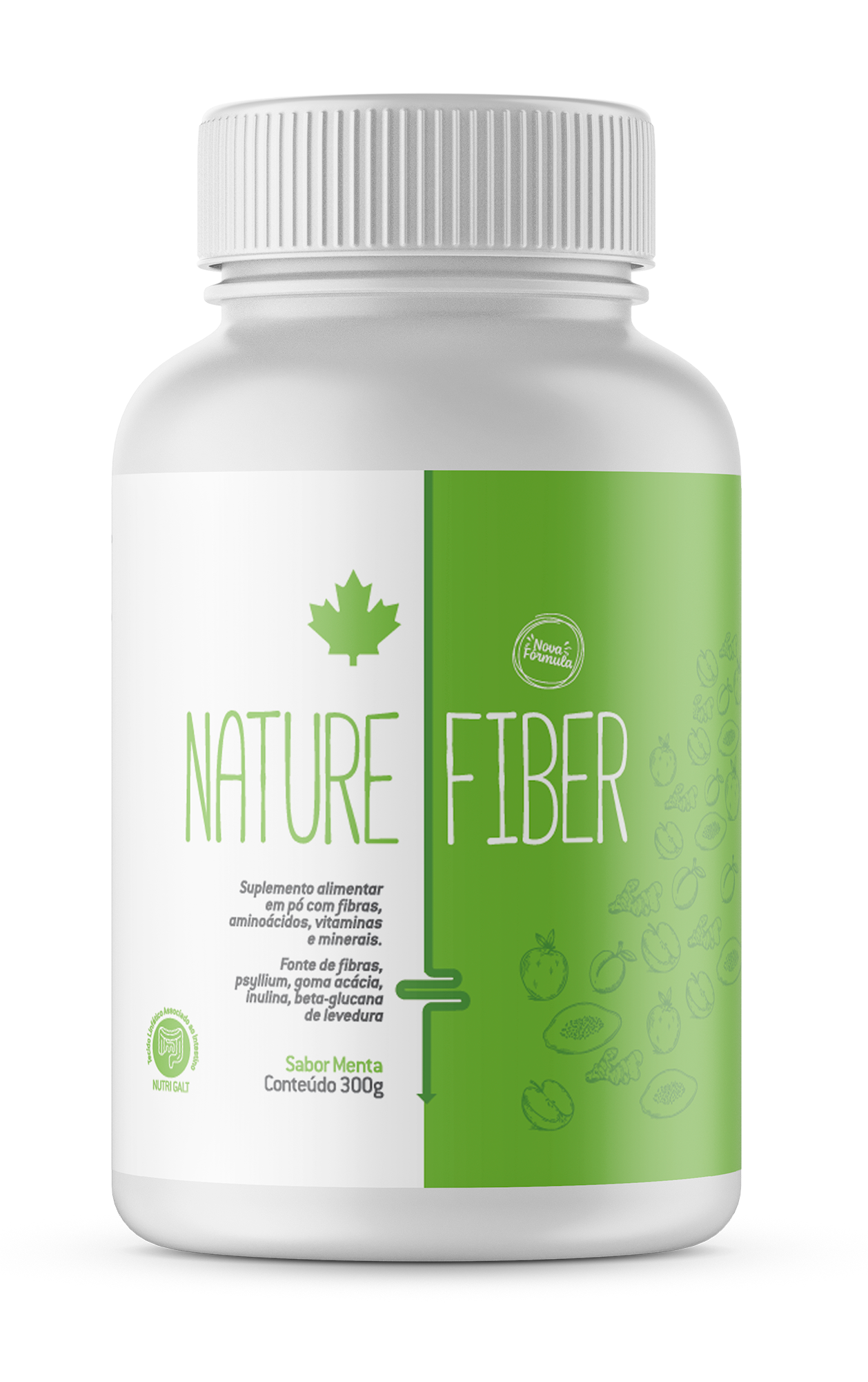 Ingredientes: Maçã (desidratada moída), Ameixa (desidratada moída), Mamão (desidratado moído), Goma acácia/arábica (Acácia senegal L.), Beta-glucana de Levedura (Saccharomyces cerevisiae), Psyllium (Plantago ovatae), Inulina, Gengibre (Zingiber officinale) pó, Óleo de Coco (Cocos nucifera L.) pó, Dimagnésio malato e Bisglicinato de Magnésio, Fosfato Tricálcico (antiumectante), L-Glicina, L-Glutamina, Vitamina C, Aroma Natural de Menta, Vitamina B3 (Niacina/Ácido Nicotínico), Zinco Bisglicinato, Vitamina B6 (Cloridrato de Piridoxina), Vitamina B9 (Ácido fólico), Picolinato de Cromo e Vitamina D3 (Colecalciferol).